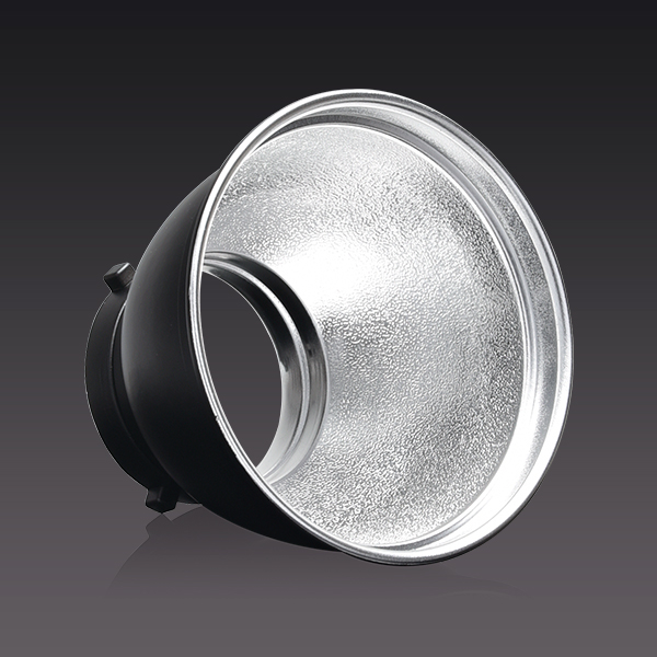 Standard Reflector is a common model on the photography lighting field. The illumination of Standard Reflector can classify as “hard” light. The main reason is the Standard Reflector can concentrate the light tracks and generate hard light. Hard light can improve the color saturation and clarity of objects, highlighting the atmosphere. Compare with Softbox, Softbox can create a contrast between light and dark but the transition is not as hard as a Standard Reflector. Most photographers and studios use the 55° Standard Reflector. The 55° reflector is mainly used for portraits, pets, flowers photography. The hard light can also simulate sunlight or use sulphatic acid paper to shoot high reflective objects.