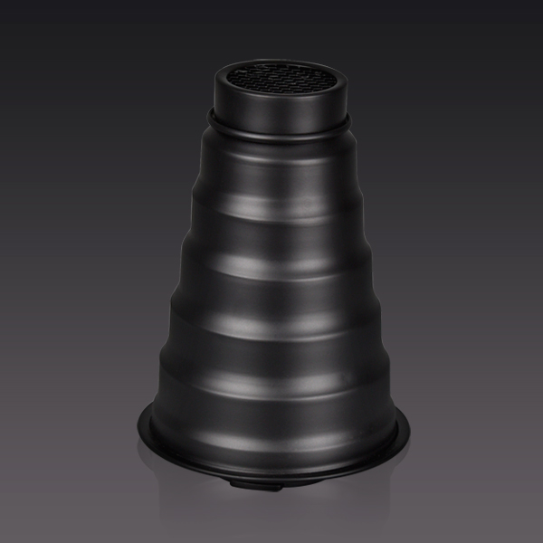 Snoot focuses the light on a focal area and producing a small area of hard light. It is mainly used to capture the shape details, outlines or specific objects by side view. When the Snoot matched with a honeycomb, the directionality of the light become more obvious while the illumination level is richer. When matched with a color filter, the color temperature of the light is changed and the rich lights create different atmosphere.