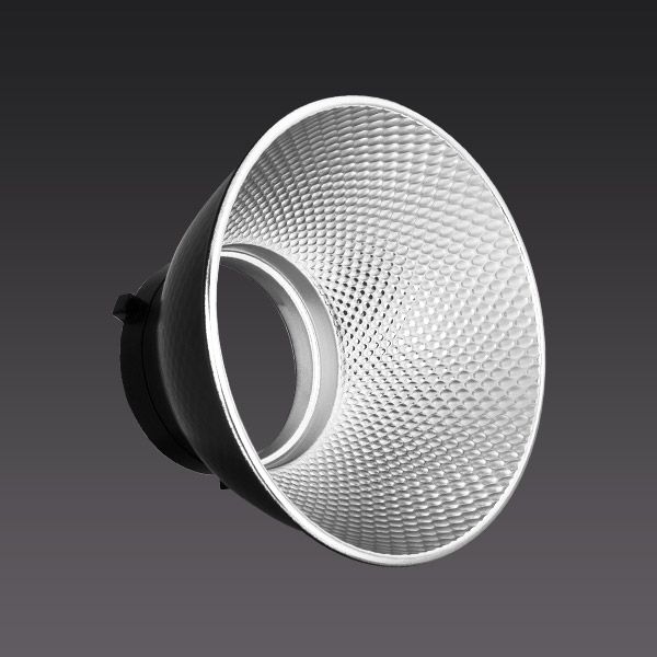 什么是摄影灯反光罩?摄影灯反光罩/工作室反光罩/拍摄灯反光罩是摄影师和工作室经常使用的一种铝制反光器。采用1090高反射率铝材,外表面喷粉或喷漆,内表面阳极处理。特点是强度高,耐腐蚀性好。一般配常规保荣卡口。摄影灯反光罩作用是控制灯光的出光角度,使大部份光线逹到目标照射物体,因而大大提高灯具灯光的利用率。摄影灯反光罩的利用率主要取决于光学弧度、材料及表面处理的效果。根据我司的验证,一个经过专业光学设计后的铝制摄影灯反光罩,相对祼光源,其光线利用效率可以大大提升500%以上。